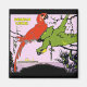 Poster de viagens vintage colorida para o Canal do Panamá com dois papagaios na árvore olhando pelo canal com um revestimento oceânico.