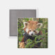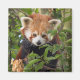 Panda vermelha se escondendo entre as folhas de uma árvore.