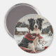 Imã Pano Collie Dog Snowman na fronteira de Natal