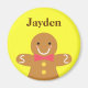 Um Homem Gingerpão giro com gravata cor-de-rosa e botões amarelos e glacé branco está sorrindo alegremente. Um design alegre e alegre para o Natal e o feriado e todo o ano! Adorável design para crianças!
