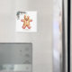 Um design festivo com um doce biscoito de gengibre com cor de rosa nas mãos e pés e sotaque branco. O rosto sorridente te desenhar. Um toque de folhas cor-de-rosa macio e pinheiras enfeite o topo do ímã. Simples diz "Eu adoro pão de gengibre" O ditado pode ser adaptado à sua preferência.