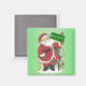 Este ímã é verde-claro com um Papai Noel fofo ao lado de uma árvore de Natal rodeada por pequenos animais incluindo um pássaro, coelho e esquilo segurando um cartaz que diz Feliz Natal enquanto está parado na neve.