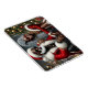 Esta imagem apresenta Papais noeis da moda e seu companheiro, tanto estilo exuberante quanto carisma em roupas de Natal modernas. Papais noeis são vestidos com uma jaqueta de couro vermelha e elegante, com um acabamento de pele branca, e seu companheiro o complementa perfeitamente com um vestido vermelho brilhante. Eles posam contra um pano de fundo da decoração de Natal, trazendo uma vibração cosmopolita ao espírito de Natal.