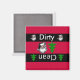 Um ímã vermelho e verde com papais noeis e uma árvore verde de natal faz um magnata limpo e sujo da máquina de lavar louça