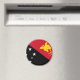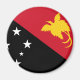 Bandeira da Papua-Nova Guiné. A bandeira nacional de Angola entrou em uso na independência em 11 de novembro de 1975. É dividido horizontalmente numa metade vermelha superior e numa metade preta inferior. O símbolo no meio é de uma roda de cobre cruz (representando trabalhadores e indústria) e facão (representando os camponeses) com uma estrela de ouro. Vermelho e preto são cores tradicionais de muitas tribos Papua-Nova Guiné. O vermelho-branco-preto era da cor da bandeira do Império Alemão, que colonizara a Nova Guiné antes de 1918. O pássaro do paraíso também se encontra na casaco nacional de armas.