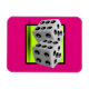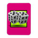 Ilustração de um par de dados brancos com pontos pretos. O fundo é criado com algumas cores neonatais ranhuras em verde limão e cor-de-rosa fuschia.