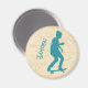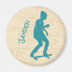 Crie um pequeno presente personalizado para seu skater favorito ou um skate a favor do partido. Este ímã apresenta uma ilustração em estilo silhueta de um skate em azul-turquesa contra fundo de madeira falsa.