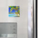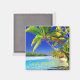 Um belo dia no paraíso das Ilhas Cook. Com um céu azul profundo sem nuvens, turquesa cintilante, tropical e água quente em uma ilha de palmeiras verdes e peluda este é o paraíso perfeito para as férias nas praias arenosas. Aproveite a sua estadia nas Ilhas Cook com este impressão de foto de ímã de qualidade!