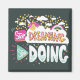 Uma citação "Pare de Sonhar Começar a Fazer" colorida e bonita com arco-íris, estrelas e cabeça de unicórnio.