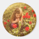 imagem tonta de sepia de doce menina cheirando tulipas vermelhas