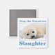 Um fecho de um filhote de foca Harp com as palavras Parar o Massacre Sensível ao seu redor. É uma matança sem sentido, tem de parar. Mostre seu apoio, se envolva e pare com essa prática.