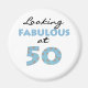 Texto preto e azul claro que se lê "Olhando fabuloso aos 50" nas Fabulosas 50 T-shirts, canecas, mousepads, botões e outros itens que fazem presentes de excelente para a pessoa que completou 50 anos, e que podem ser vestidos o ano inteiro!