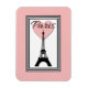Ilustração Paris com Torre Eiffel e decoração cardíaca em retângulos pretos e brancos sobre fundo cor-de-rosa