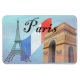 Ícones de Paris; Torre Eiffel, Arc de Triomphe e bandeira de França.
