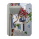 Explore the picturesque alleys with blooming bougainvillea and blue and white architecture in the old town of Parikia on the idyllic Greek island of Paros.