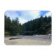 Vista da ponte sobre Cummins Creek que corre hetero no Oceano Pacífico. O nevoeiro finalmente cedeu a uma manhã ensolarada no Parque Estadual de Netuno, na costa de Oregon. Foto de maio de 2015.
