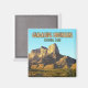 Mostra as montanhas de recifes fossilizadas e pradarias do Parque Nacional das Montanhas Guadalupe, no Texas, EUA, num ímã em sua casa como recordação de um dos maiores locais da América!