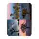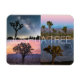 Joshua Tree National Park Sunset Night Landscape Magnet: um imã feito com quatro fotos tiradas em Joshua Tree, Califórnia. Com uma foto da galáxia Via Látea, uma trilha de estrelas do céu noturno mostrando a rotação da Terra em torno da Estrela do Norte, um pôr do sol, e uma foto do nascer do sol tirada durante a hora azul, com montanhas de neve atrás das árvores de Joshua, este é o cartão-postal perfeito para amantes do Parque Nacional Joshua Tree!