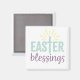 Adicione este ímã à sua geladeira ou a qualquer superfície magnética, ele foi projetado com a frase "Bênçãos de Páscoa" com uma cruz embutida na palavra Páscoa.