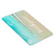 Uma bela praia arenosa é vista por um céu turquesa e espumando ondas verdes. Mantenha uma alegria de praia perto de você onde quer que esteja!