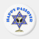 Happy Passover apresenta a Estrela Judia de David e a xícara de vinho pronta para as orações e quatro perguntas.