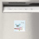 Pássaro azul em um galho de árvore florescente rosa. Imã de geladeira bonita para personalizar com nome próprio ou para um presente.