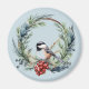 Imã Pássaro Chickadee de Natal na Arte Wreath