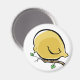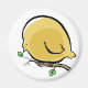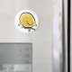um ímã engraçado com um grande pássaro de desenho amarelo que talvez tenha que perder peso antes que ele voe.