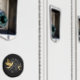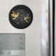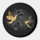 Joias pretas e douradas, beija-flores, sobre fundo de cinza decorado com plantas. Pássaros joalharia. Pássaro ouro. Pássaro Dourado.