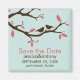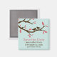 Os ímãs de casamento com o tema primavera ou natureza apresentam duas silhuetas de aves marrons tocadas num membro da árvore com pêssego ou folhas cor-de-rosa sobre um belo fundo azul aqua. Visite nossa loja para obter produtos correspondentes. Bloqueado