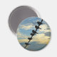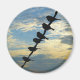 Fale sobre estar online! Seis Sparrows tocavam num fio telefônico com um belo céu azul pôr do sol com nuvens.