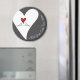 O design do produto apresenta duas pombas brancas empoleiradas juntas e olhando para um coração. Pombas brancas são símbolos de amor, sorte, paz e prosperidade. Esta ilustração simples de pássaros torna ímãs modernos e únicos com texto personalizado para o aniversário dela, Dia dos Namorados, casamento ou lembrancinhas de aniversário de casamento.