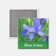 irises azuis e folhas verdes. este ímã fresco é um lembrete de que você deve manter suas comidas frescas e não comprar muito de uma vez! :)