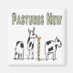 O desenho de Pastures New mostra um touro distraído pela vaca no campo seguinte. Para quem pensa em seguir em frente, planejar uma nova jogada, etc.