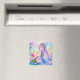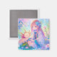 Bonito anime rosa, azul e roxa com flor no cabelo brincando com um axolotl.