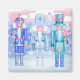 Três bolachas jubilantes, com presentes encantados da estação de inverno, não se enfartam em meio a uma floresta pastel beijada pela geada. Ilustração original do artista Noël Snow.