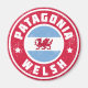 Um design de textura em tons de popa, com o texto PATAGONIA WELSH ao seu redor, e a bandeira da Patagônia no centro.