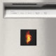 Pena de pavão brilhante feita de fogo e chamas sobre fundo negro.