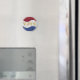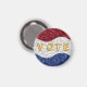 A bold, modern patriotic illustration featuring flowing wave bands of red, white, and blue in a shimmering mosaic texture. The undulating stripes create movement and energy, while the glittering, tile-like pattern adds depth and visual interest. Glitter is simulated in the artwork.
