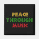 Letras amarelas, verdes e vermelhas soletram "Paz Através da Música". Mensagem antiguerra excelente para se espalhar na língua universal que é a música. Afinal de contas, foi o Rock and Roll que derrubou o muro e não políticos mesquinhos.