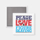 Indique o que é realmente importante para você com este ímã com as palavras "Paz, Amor, e Patinação Física". A letra "c" na palavra paz é substituída por um sinal de paz, enquanto o coração que se posiciona para a letra "O" no amor contém um skate de gelo. Disponível com produtos correspondentes.
