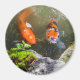 Peixes coloridos de carpa ou koi num lago de jardim superficial.