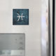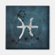 Uma constelação de estrelas pretas flutuava sobre o símbolo astrológico dos Peixes do peixe gêmeo, cercado por uma estrutura de estornos prateados sobre um fundo azul-lacrimogêneo angustiado. Acessório perfeito para alguém nascer sob o Sinal de Água de Peixes - de 19 de fevereiro a 20 de março.