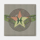 As chamas inspiradas na tatuagem formam o fundo de um círculo dentro do círculo para a estrela, com o símbolo para Peixes do Peixe no centro.