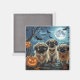 Libere o espírito assustador com esta design sombria do Dia das Bruxas apresentando um bando de cachorros sob um céu escuro e iluminado, cercado por morcegos voadores e abóboras brilhantes. Perfeito para aqueles que amam um toque de diversão terrível com seus amigos peludos!