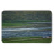 Uma fotografia de um rio no Parque Nacional de Yellowstone, com vários grupos de gansos do Canadá ao longo da costa e alguns pelicanos americanos descansando no meio do rio em alguns expostos. Imagem Copyright ©Kimberly J Tilley.