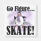 Um adorável design de patinagem de pinguim com um pinguim vestido de chapéu e carregando de cachecol, e um texto que diz "Vai figura...SKATE!".