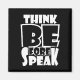 Pense antes de falar design tipográfico com uma citação engraçada. Citação inspiradora, ditado inspirador. Típica engraçada com ditado motivacional, citação motivacional. Versão preta.