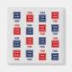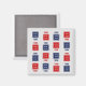 Um ímã com um padrão de caixas e texto "pensar fora da caixa". Em vermelho de sangue e cores marinhos em uma cinza de prata pálida.