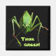 Este ímã do Dia da Terra caracteriza um katydid verde assustador. Katydids é de tamanho médio aos grandes insetos. São geralmente verdes, às vezes com marcações marrons, e são camuflados para misturar-se com as folhas que alimentam sobre. Suas antenas muito longas distinguem-nos dos gafanhotos. Visto acima do fim, parecem ser aliens do espaço! O texto lê: Pense verde! Pode ser personalizado ou removido.